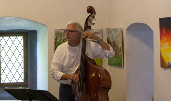 Mathias ist der Mann für die starken Saiten, Mathias spielt seit ewig Bass in verschiedenen Bands von klein bis groß (Big Band). In Bezug auf die Arangements unserer Stücke ist er das Hirn und der Groove der Band.